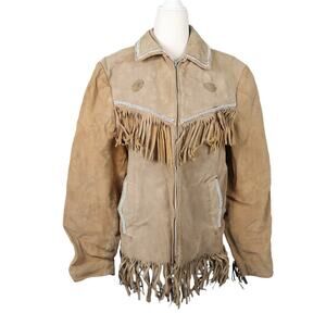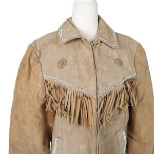 Zip front. Beaded trim. Fringe trim. Lined. Pockets.