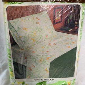 Vintage 70s twin bed sheet butterfly garden spring meadow