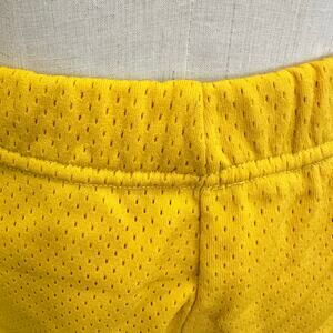 Vintage 70s varsity style mesh basketball gym shorts yellow nylon Size Medium