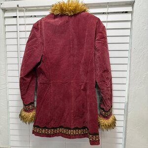 Vintage 70's women's MIX IT rust suede coat with faux fur trim; Size L
