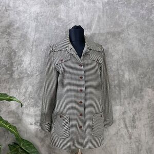Vintage 70s women’s Medium Houndstooth Shirt Jacket Button Front Pockets Shacket