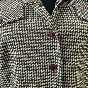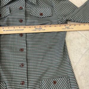 Vintage 70s women's M Hounds tooth Shirt Jacket Shacket Long Sleeve Button Front Pockets Green/ Brown colors.