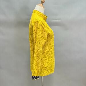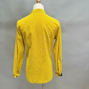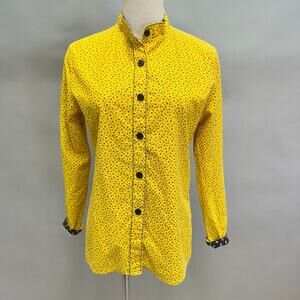 Vintage 70s yellow twill floral print button up long sleeve top Size Small