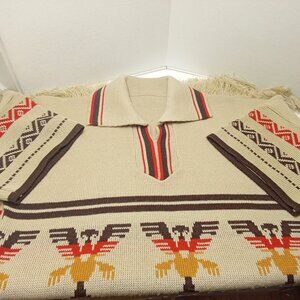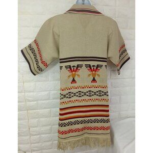 Vintage 70s-80s Aztec Southwestern Sweater Tunic Collar SSL Slits Fringe -10/12