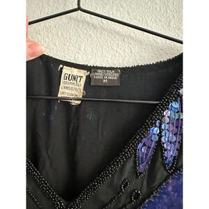 sequin beaded butterfly top, disco party top, vintage cocktail, Made in India, party, Eras Tour, Purple, Blue, Black, New Years Eve, NYE, Christmas Party, Holiday Party, Festival, Silk, Statement Piece, Unique