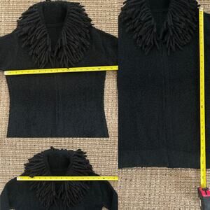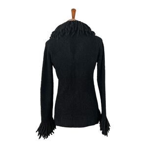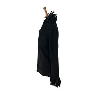 Vintage 70s/80s Black Bouclé Fringe Cardigan Sweater – Dramatic Collar & Cuffs