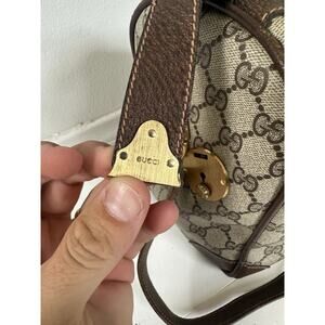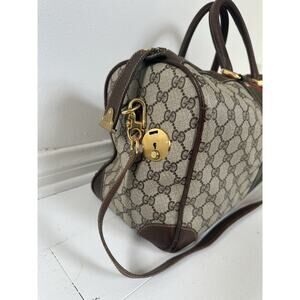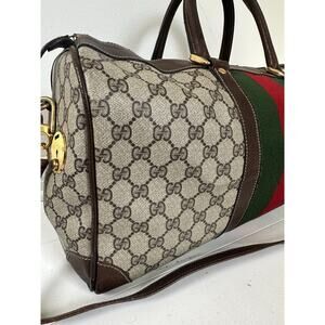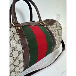 Vintage 70s/80s Gucci Boston Duffle Bag Shoulder Strap Web Canvas & Leather
