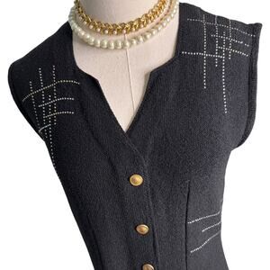 Out of this world vintage 70s/80s Jennifer Roberts knit wool blend metallic studded sleeveless jumpsuit!