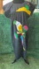 Beautiful appliquéd muumuu, featuring flowers and a large parrot. Black with vibrant appliqué, absolutely stunning piece, most likely vintage 70s or 80s and likely of Mexican origin given the style.