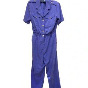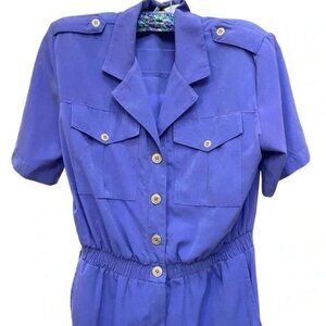 Vintage 70s–80s Saint Germain Paris Periwinkle Short-Sleeve Jumpsuit – Retro Dis
