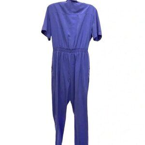 • Design & Fabric— Drenched in rich periwinkle purple, this short-sleeve jumpsuit features a classic collared front, functional flap chest pockets, and flattering wide-leg tailoring. Gold-tone buttons add stylish contrast.
