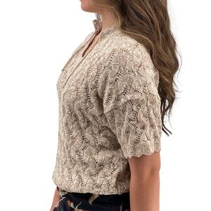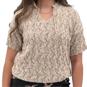 Vintage 70s/80s Short Sleeve Sweater Open Weave Design Neutral Beige Made in USA