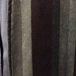 Vintage 70s-80s TanJay made in Canada Open Jacket Blazer Women's medium (10) Lined, collarless open-no closure, cotton/rayon blend velvet, vertical striped pattern, Dry Clean in shimmery shades of earthtone dark browns tan. In pre-owned* condition with wear/marks on right elbow sleeve - see pics for detail. Steampunk Rocker Chic Classic Town Country Vanity Fair On Trend Preppy Dark Academia Career Casual Cosplay