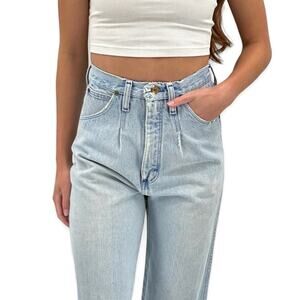 Vintage 1970s/1980s women's Wrangler jeans. Super high-waisted, soft, worn-in denim, light wash blue, pleated waist, LONG inseam, MADE IN THE USA!