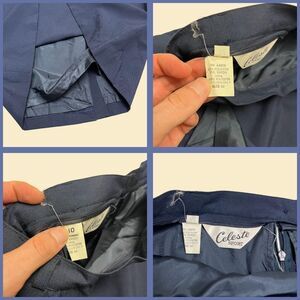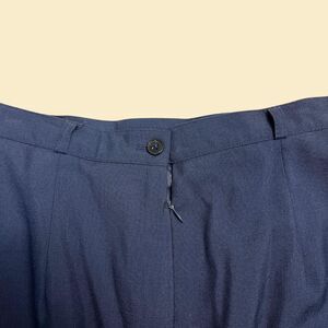 Vintage midi to maxi skirt, manufactured ca. 1970s-1980s by Celeste Sport. Navy blue with button and zipper closure, two front pockets, belt loops, and a back slit. Size 10.