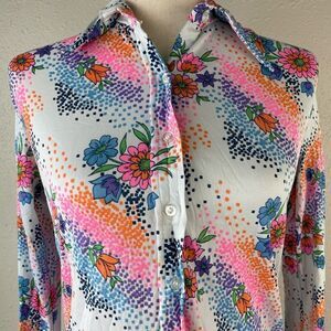 Love the funky and classic 70s print and large collar on this vintage button-down shirt. It measures 17 inches armpit to armpit laying flat and is 21 inches in length from the shoulder to the hem.