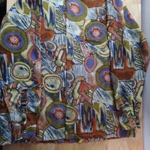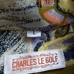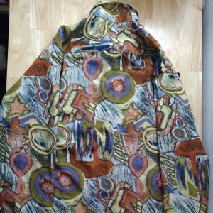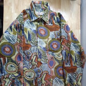 Vintage 70s Charles Le Golf Abstract Geometric Polyester Disco Shirt, Size Large - Measures p2p=23.5" Length=30" Sleeve Length=23" - Excellent Condition, No Flaws