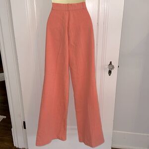 Vintage 70s Coral Crinkle Cloth High Waisted Wide-Leg Pants