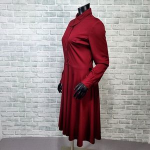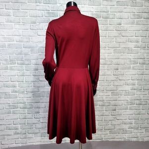 Vintage 70s Jan Sue Calif Womens M Burgundy Polyester L/S Disco Shirt Dress