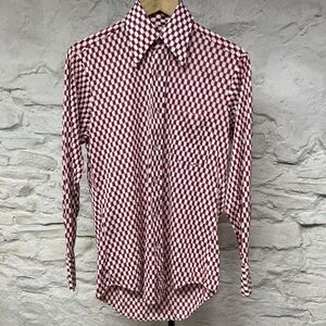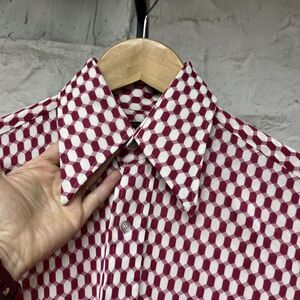 Vintage 70s Psychedelic Disco Shirt Optical Illusion Hippie Button Up Mad Men