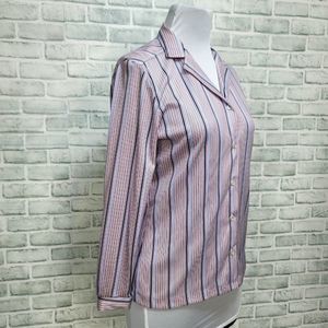 Vintage 70s Queen Casuals Womens M Striped Button Front Long Sleeve Blouse