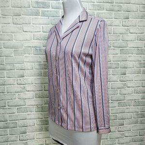 Details: Vintage 70s Striped Button Front Long Sleeve Blouse