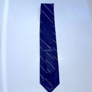 Vintage 70s Savin dark navy blue polyester tie with white diagonal pinstripes