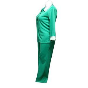Vintage 70s Sears Fashions Womens L/XL Green Polyester Pant Leisure Suit 2pc Set