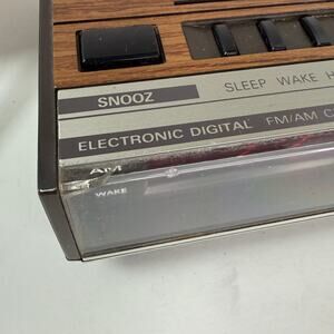 Vintage 7-4624 GE General Electric Alarm Clock AM/FM Radio Wood Grain TESTED