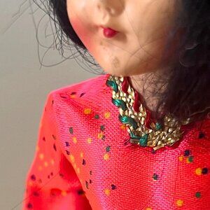 Vintage 7.5" Doll Spanish Mexican Girl Sleepy Eyes Floral Dress Souvenir