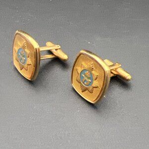 Vintage 75th Anniversary South Africa Police Badge Cufflink Set Gold Tone Blue