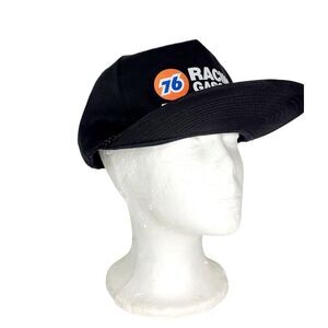 Vintage 76 Racing Gasoline black with checker race stripe, braided strap, adjustable snapback hat/cap adult unisex NEW NWOT