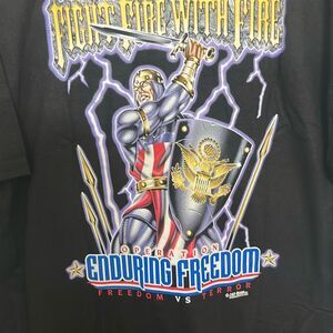 This classic piece showcases the iconic style of the 90's era, with a durable design that lasts through the ages. Made by 7.62 Design, this shirt is not only a fashion statement but also a tribute to the enduring spirit of freedom and courage. The military-inspired graphics and cotton material make this t-shirt a must-have for any nostalgic collector or fashion enthusiast. Stand out from the crowd with this unique and timeless piece that embodies the essence of military heritage and style.