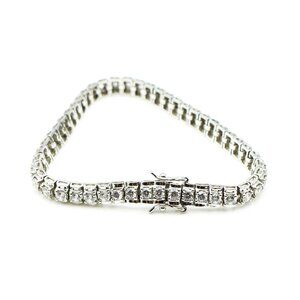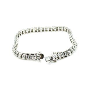 Vintage 7-Inch Sterling Silver Tennis Bracelet With Clear Cubic Zirconia. This stunning bracelet makes a great gift for holidays and evenings out. Set with 48 prong set round cut Clear Cubic Zirconia gemstones, this bracelet sparkles like Diamonds at a fraction of the cost. This bracelet is Platinum plated to prevent the silver from tarnishing. Beautiful piece!