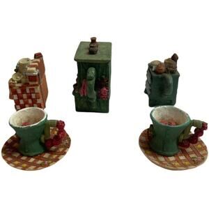 Vintage 7PC Dollhouse Ceramic Kitchen Accessories Cup & Saucer Tea Pot