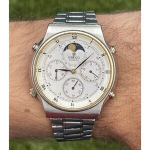 Vintage 7a48-7000 JDM Seiko Chronograph Quartz Watch Moon Phase Moonphase