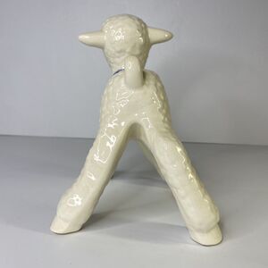 Vintage 8" Ceramic Lamb Planter Long Legs USA Nursery Decor Kitschy Rosy Cheeks