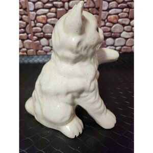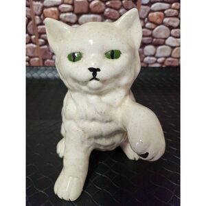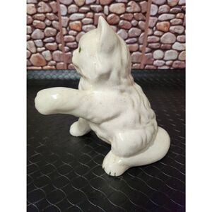 Vintage 8” Ceramic Cat White With Paw Up Figure