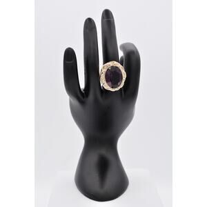 Vintage 8 Cocktail Ring Purple Crystal Open Bezel Chunky Oval Silver Tone
