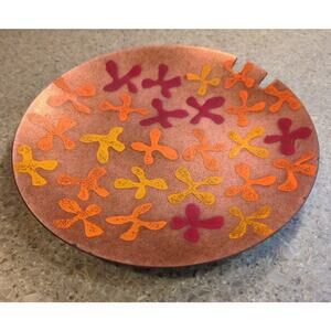 Vintage 8" Enamel on Copper Art Deco Ashtray Mid Century Modern 50's