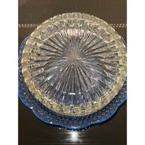 Vintage English Button and Cane Crystal 8”Serving Bowl W/ Silver Plated Rim. In excellent vintage condition, no chips, cracks, or notable damage.