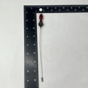 Vintage 8" Hat Pin Red Swirl Glass Carved Rose Bead Stick Pin Mid Century