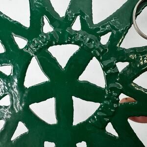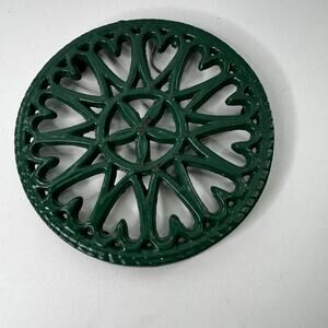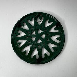 Vintage 8 Inch Cast Iron Trivet Green Round Hanging Decorative China 1994