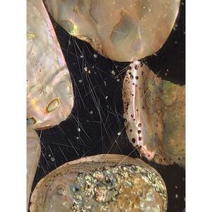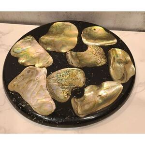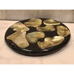 Vintage 8" Round Acrylic Lucite Abalone Sea Shell Footed Trivet Hot Plate | EUC