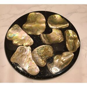 Vintage Mid-Century Modern 8" Round Acrylic Lucite Abalone Sea Shell Footed Trivet/Hot Plate | Excellent Used Vintage Condition *Flaw, scratch marks from previous use | Please refer to the photos for the condition | Please refer to the photos for the condition | Weight 1.9 lbs. Before packaging.