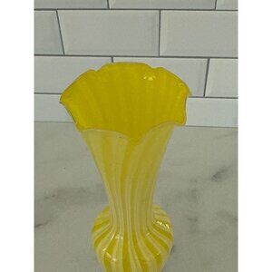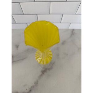 Vintage 8" Yellow Swirl Glass Vase With Scalloped Rim Clear Glass Base
