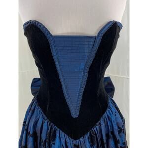 Basque Waist, Velvet Bustier w/ Pleated Blue Taffeta Inset