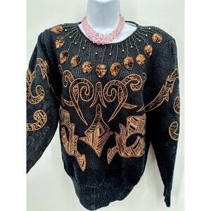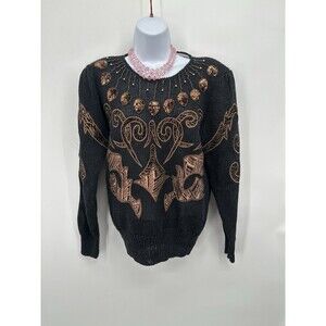 Vintage 80 s Sweater with brown and gold embroidery Beaded Regency Old Money S