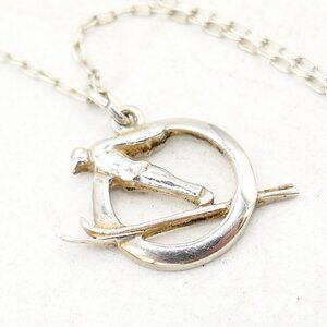 Vintage 800 Silver Ski Circle Pendant Necklace 22"