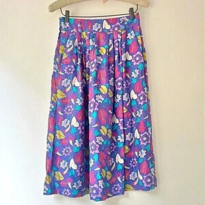 Vintage 80’/90’s 100% Silk Bright Floral Retro Midi Skirt A-line Women’s Size 10